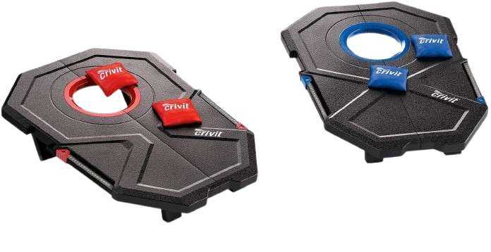 Bestehend aus 2 faltbaren Boards und 8 Bean Bags (4x rot, 4x blau)